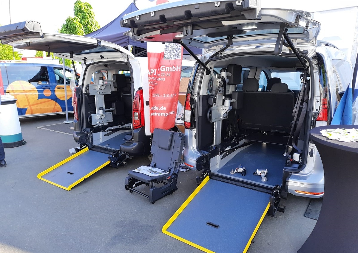 „Aller guten Dinge sind drei“- das dachten sich wohl auch die Mitarbeiter der Firma Activa aus dem münsterländischen Borken. Zusammen mit der Firma API stellte man auf der diesjährigen Rettmobil neben dem Citroën Berlingo auch den Volkswagen Caddy Maxi mit XL Ausschnitt vor, der dadurch sehr gut für Pflegerollstühle geeignet ist. Interessant war zudem, dass die beiden werksseitigen Einzelsitze in der 3. Sitzreihe trotz Rollstuhlumbau erhalten bleiben. „Das kommt vielen Taxiunternehmen sehr entgegen, weil das Fahrzeug somit wieder als 7-Sitzer einsetzbar ist“, berichtet Thorsten Nienhaus von Activa.