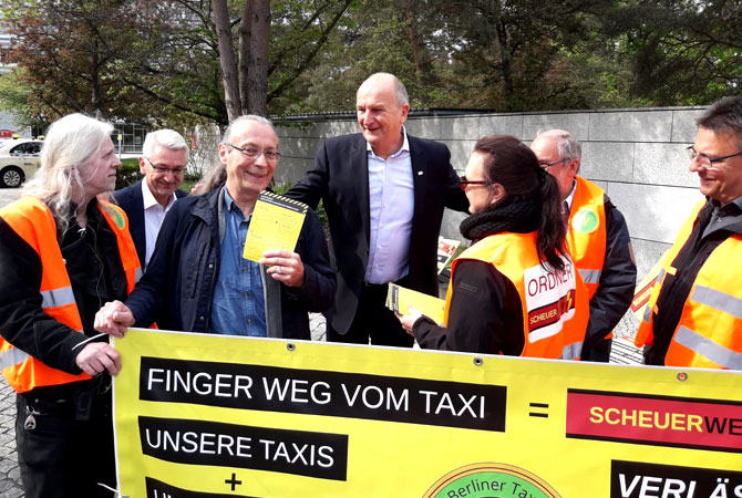 Der Ministerpräsident von Brandenburg, Dietmar Woidke, nahm sich für die Anwesenden aus dem Taxigewerbe, Leszek Nadolski (1. Vorsitzender der Innung des Berliner Taxigewerbes), Mariusz Kramer (Innung des Berliner Taxigewerbes), Bernd Stumpf (Berliner Taxivereinigung), Jasmin Breuer (Täxihexi), Anke Niggemann, Karl-Heinz Kirle (Taxiverband Berlin-Brandenburg) und Frank Lüder vom Taxiverband Potsdam (PTV), die Zeit und stellte seine Grundposition klar dar: „Vernünftige Arbeitsbedingungen, gegen Selbstausbeute und gleiche Regeln für alle“.