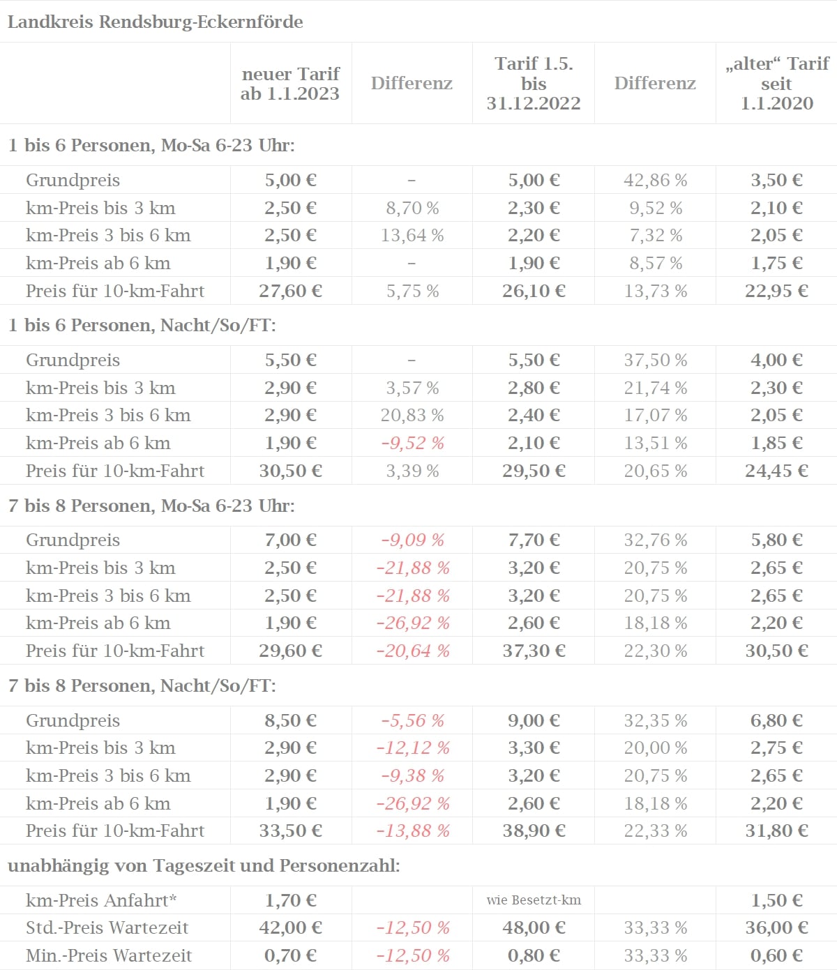 | Mindestpreis für 10-km-Festpreisfahrt innerhalb Tarifgebiet | 22,90 € | 23,00 € |