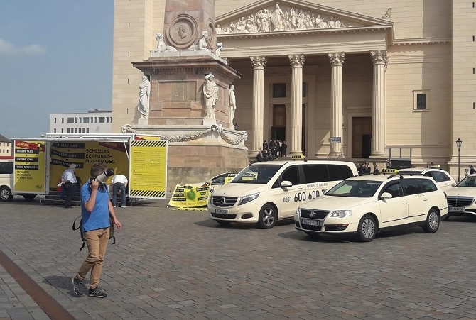 9 Uhr: Unser Taxi Times Reporter Simi ist auf den Weg nach Potsdam. Wie schon bei zahlreichen Taxidemos und Mahnwachen der letzten Wochen wird er auch heute wieder ab 10.00 Uhr live auf der Taxi Times Facebook-Seite berichten.
