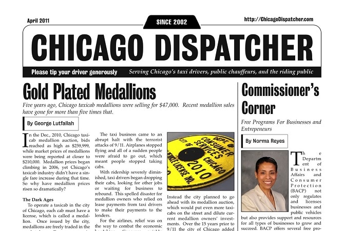 Im Herbst 2006 veranstaltete Chicago eine Auktion zum Verkauf von Taxikonzessionen (in USA als ‘Medallions’ bezeichnet). Hunderte von Angebote gingen ein, einschließlich einiger Angebote, die deutlich über dem Marktpreis lagen. Die Stadt sammelte Millionen von Dollar. Beamte erklärten damals den Verkauf zu einem Erfolg.
