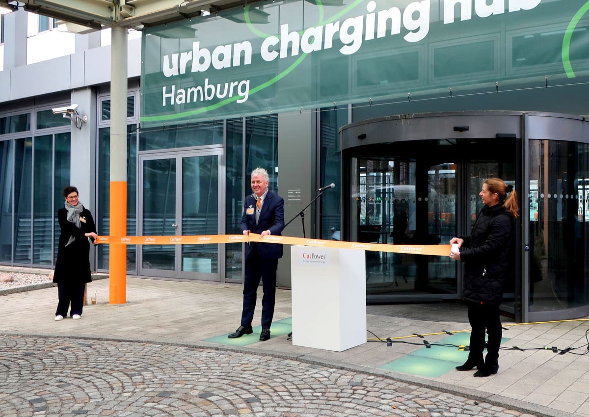 Beim Lade-Hub am Alten Wall 40 hat der Betreiber CutPower neue Wege für die Hamburger City beschritten. Die vier Ladepunkte können parallel bis 300 kW Ladestrom für die E-Fahrzeuge bereitstellen. Je nach der verbauten Technologie im Fahrzeug reicht die Leistung aus, um innerhalb von fünf Minuten Strom für die nächsten 100 Kilometer zu laden. CutPower vergleicht deshalb die Ladegeschwindigkeit mit dem Tankvorgang bei einem Verbrenner.