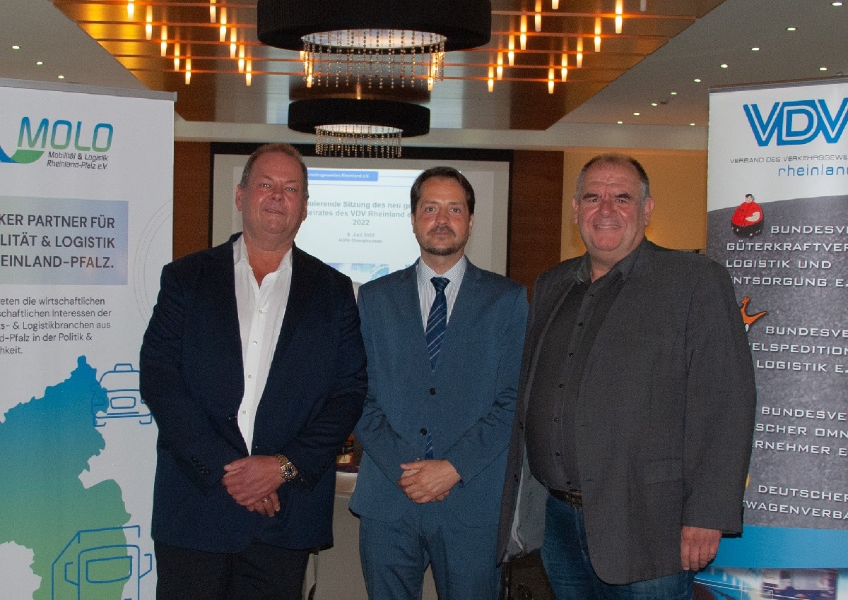 Lob gab es auch für die bisherigen Vorstände Ralf Bernards und Gerd Gutendorf. „Die Verbandsführung hat es ausgezeichnet, die vier Fachsparten, die der VDV Rheinland repräsentiert, enger zusammengeführt zu haben. Das Verkehrsgewerbe tritt geschlossen und mit einer Stimme auf, was bewirkt, dass die gesellschaftliche und politische Wahrnehmung unserer Branchen verstärkt Gehör findet“, betonte Klein. Gipfeln würde das alles in der Gründung des Dachverbandes MOLO (Mobilität und Logistik Rheinland-Pfalz e.V.), für dessen Etablierung ebenfalls der Vorsitz und insbesondere Herr Bernards maßgeblich beigetragen habe. Gewürdigt wurde dieses Engagement mit der einstimmigen Wahl Bernards zum Ehrenvorsitzenden des Verbands.