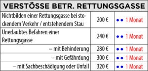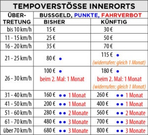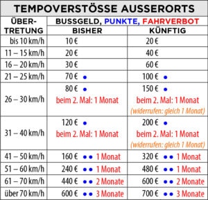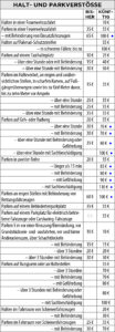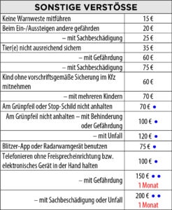An dieser Stelle nun eine tabellarische Übersicht über die künftig zu erwartenden Strafen bei Missachtung der Verkehrsregeln.