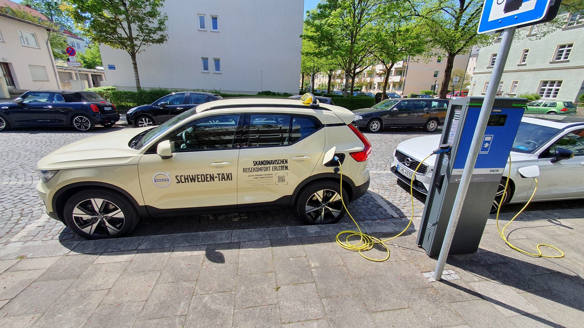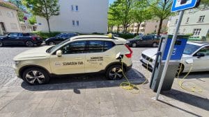 Das Taxipaket ist übrigens schon im Preis inbegriffen und zudem nicht auf Fahrzeuge mit bestimmten Ausstattungsdetails beschränkt. Der Kunde kann grundsätzlich zwischen einer Ausstattung mit Semitron oder Hale Geräten entscheiden. In beiden Varianten wird ein Spiegeltaxameter verbaut. Weiter umfasst das Taxipaket das Dachzeichen inklusive Schalter und Anschluss und eine Taxi-Alarmanlage. Die Folierung in Hellelfenbein ist optional. Ganz besonders interessant ist, dass die Fahrzeuge inklusive Konformitätsprüfung, Ersteichung sowie mit der Untersuchung nach § 42 BOKr ausgeliefert werden. Auf Wunsch wird auch der Tarif aufgespielt. Mit anderen Worten, der XC40 Recharge P8 kann direkt nach der Auslieferung als Taxi eingesetzt werden.