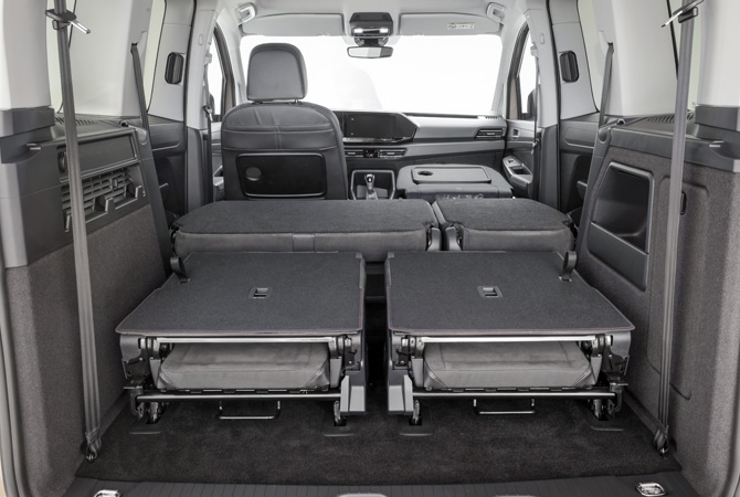 Wie gehabt wird es den Caddy mit zwei verschiedenen Radständen geben Beide Karosserieversionen bieten maximal sieben Personen Platz. Neu ist, dass in der dritten Sitzreihe jetzt zwei Einzelsitze verbaut sind.
