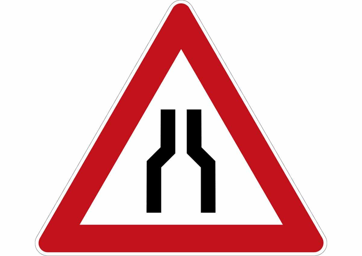 Bietet eine Fahrbahn erst Platz für mehrere Fahrzeuge nebeneinander und verengt sich dann, so dass ein Stück weiter nicht mehr so viele Fahrzeuge nebeneinander passen, so kann durch unterschiedliche Schilder und Fahrstreifen angezeigt werden, wer wen vorzulassen oder hereinzulassen hat.