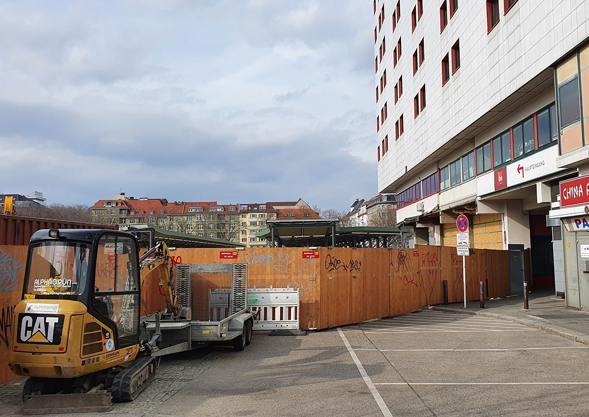 Beitragsbild: Baustelle am Standort des bisherigen und künftigen Taxihalteplatzes. Foto: Axel Rühle