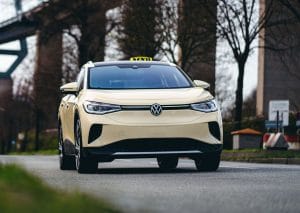 Die Hamburger E-Taxi-Förderung kooperiert mit zahlreichen Fahrzeugherstellern, darunter auch Volkswagen über deren Hamburger Niederlassung. Noch ganz frisch auf dem Markt wird der Volkswagen ID.4 zunächst exklusiv für das Hamburger Taxigewerbe mit einer Taxiausstattung angeboten.